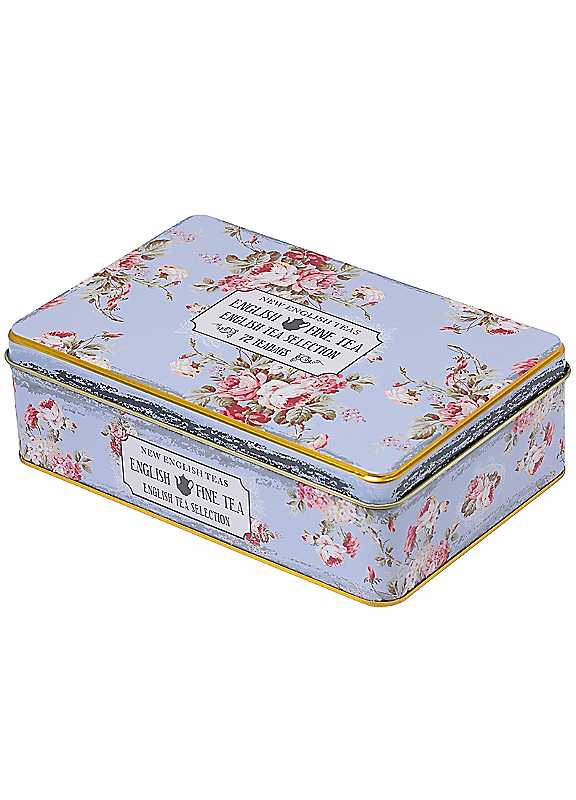 New English Teas Vintage Floral 72 Teabag Selection Tin - Powder Blue