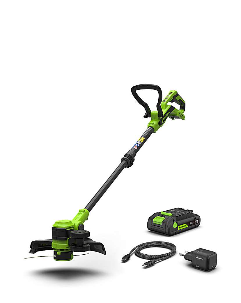 Keep lawn edges neat and tidy with the Greenworks 24V 30cm Grass Trimmer, a lightweight and versatile cordless tool designed for quick and efficient garden maintenance. Powered by a reliable 24V lithium-ion battery, it delivers strong cutting performance without the hassle of petrol engines or trailing cables. The generous 30cm cutting width allows you to cover more ground quickly, making it ideal for trimming grass around borders, fences and garden features where a lawn mower can?t reach.