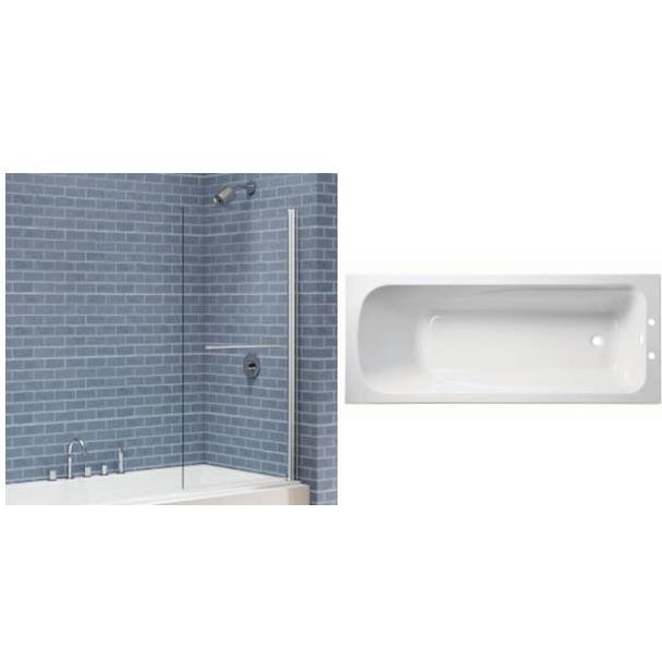 Nexa By Merlyn 6mm Single Square Adjustable Bath Screen with Towel Rail 1500 x 800mm + Wickes Standard Acrylic Straight Bath 1700 x 700mm