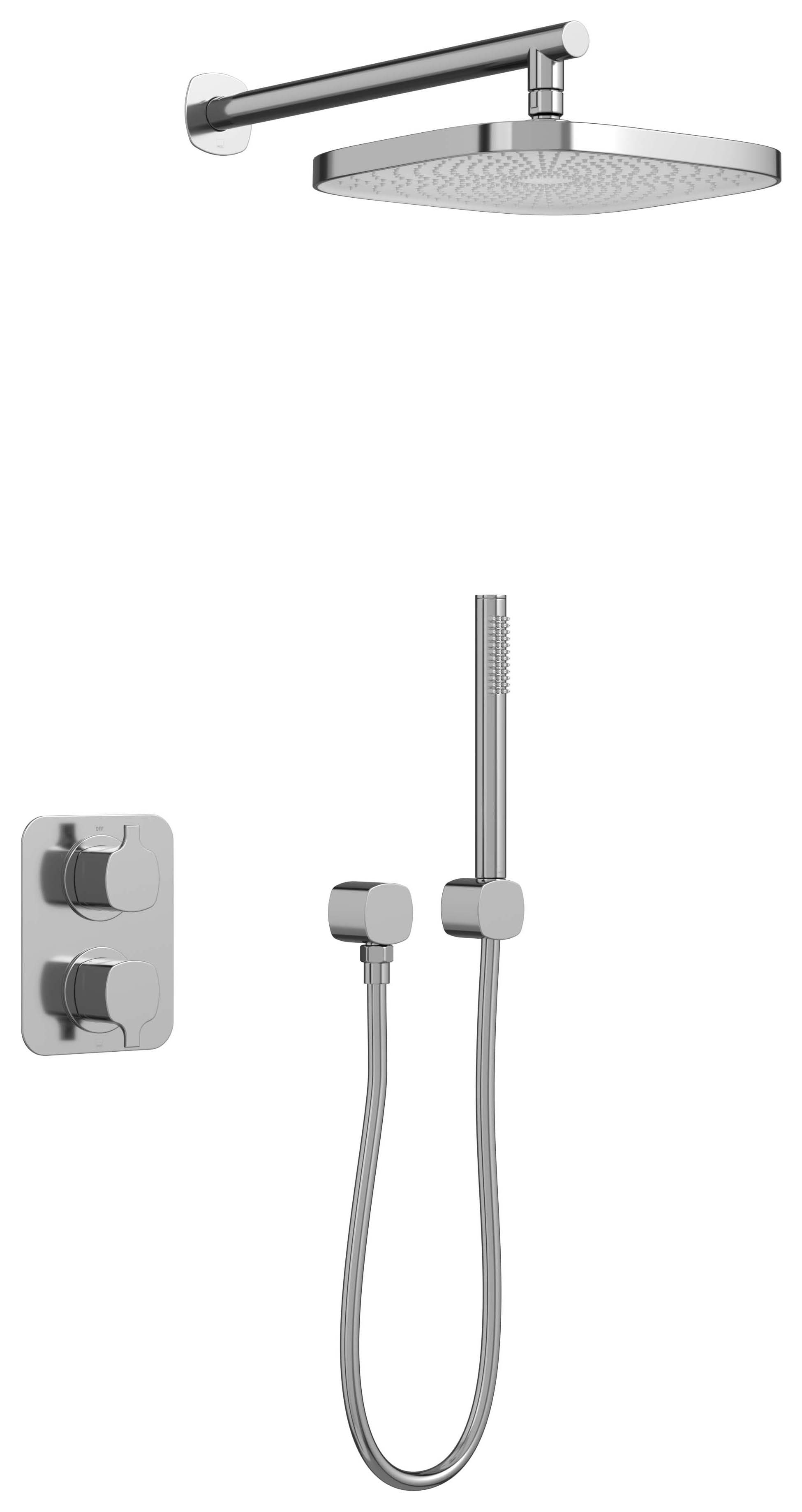 Nexa By VADO Veva Dual Outlet Concealed Thermostatic Mixer Shower Kit - Chrome - This Veva dual-function shower package provides a safe showering solution thanks to thermostatic technology preventing temperature fluctuations. It includes a concealed two-outlet shower valve, wall-mounted fixed shower head and mini shower kit.