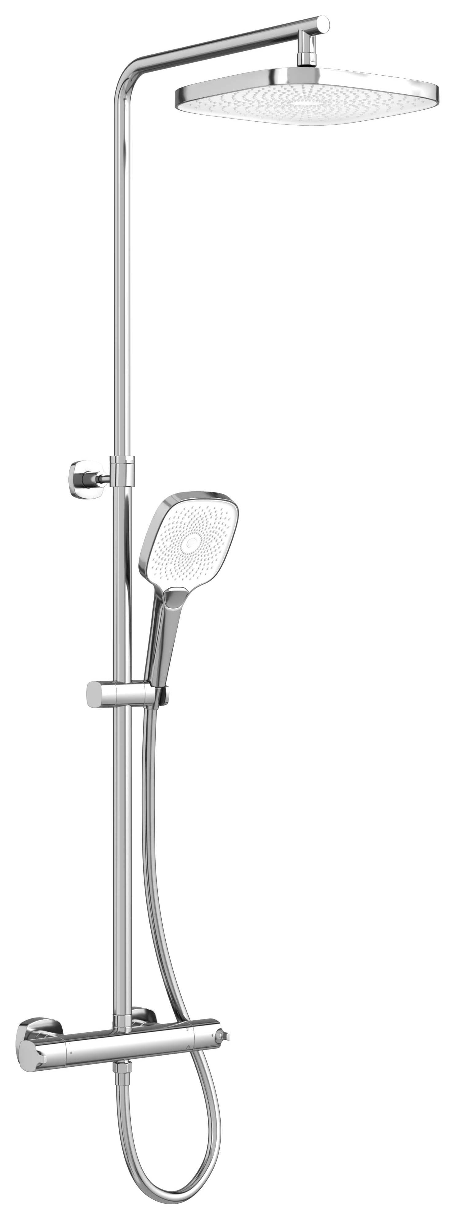 Nexa By VADO Veva Dual Outlet Exposed Thermostatic Mixer Shower Includes Shower Head & Riser Rail - Chrome - This Veva dual-function exposed shower column provides a safe showering solution thanks to thermostatic technology preventing temperature fluctuations. It features a large rainshower fixed head and multi function shower handset.