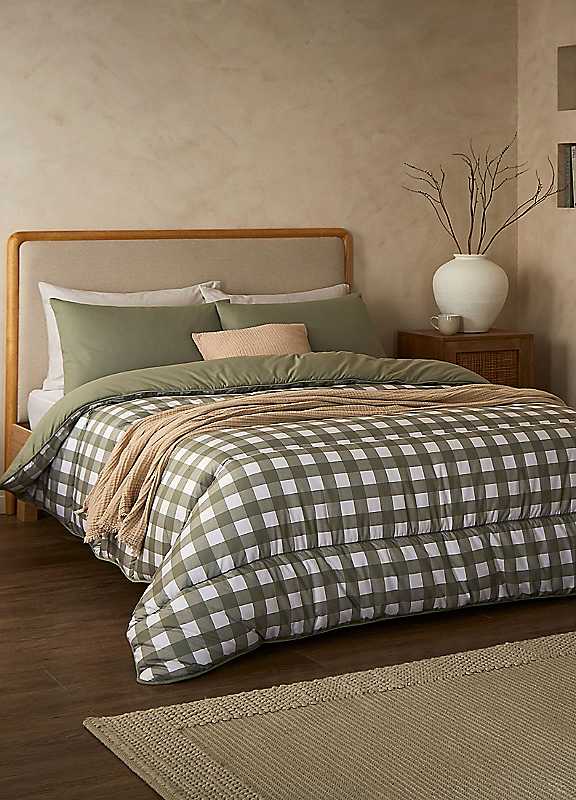 Night Lark 105 Tog Coverless Duvet Pillowcase Set Olive Gingham