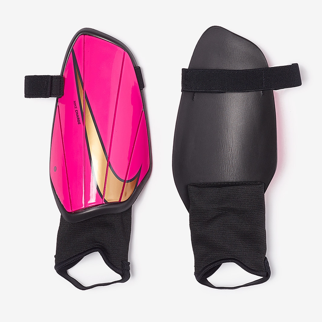 Dominate on the pitch with confidence in the Nike Charge Shin Guard in Pink BlastOff NoirMetallic Copper, which features an anatomically correct design that neatly wraps around your leg. The Nike Charge Shinguards have a pullon stirrup design that stays in place during play.The shell gives you lowprofile impact protection and the foam back fits the contours of your skin for comfort. Pullon stirrup design stays in place during play Shell gives you lowprofile impact protection Foam back fits the contours of your skin for comfort Materials 43 polypropylene, 33 EVA, 17 polyester, 7 rubber