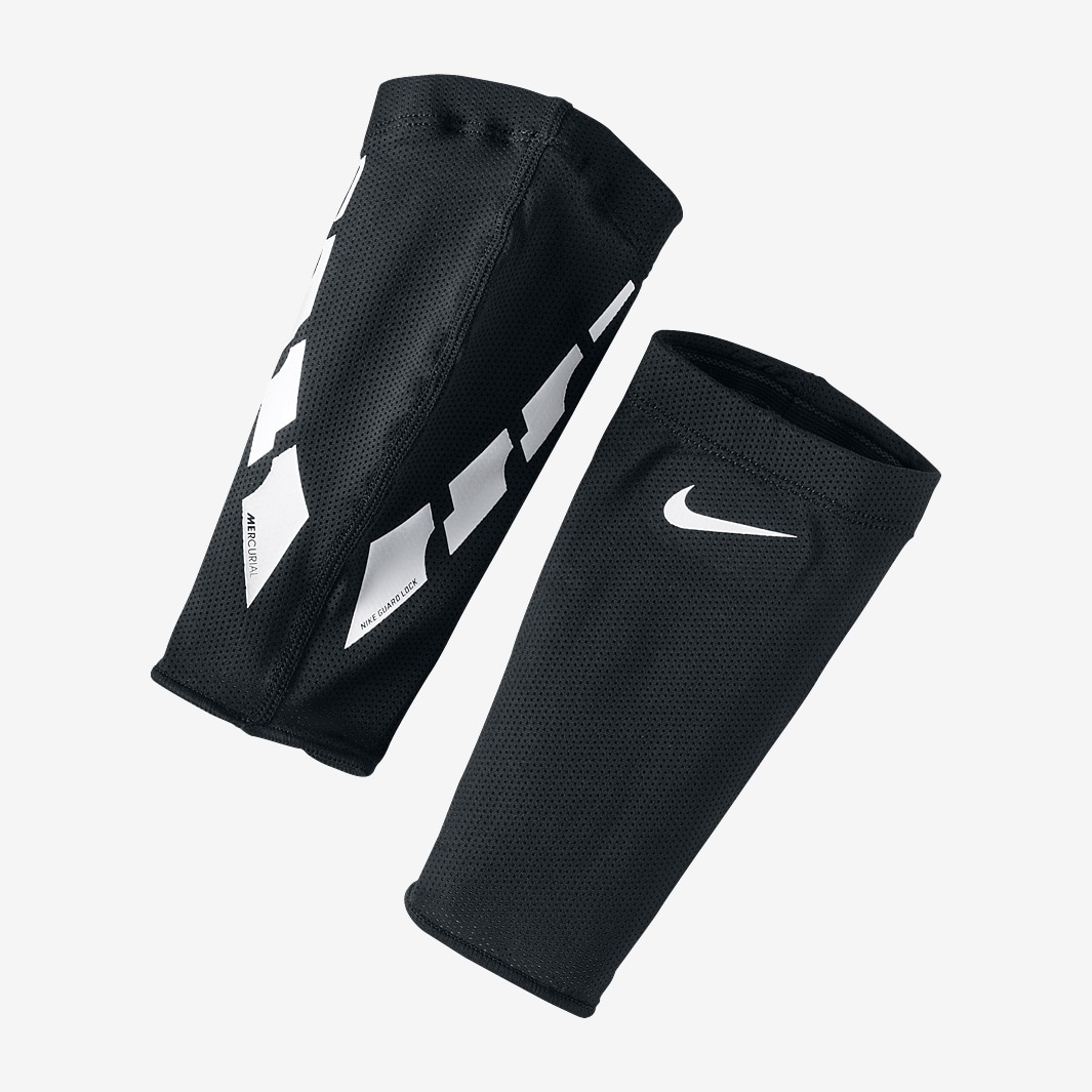 Nike Guard Lock Elite Sleeves CUFF HighFriction Elastic Cuff lined with Silicon increases guard security.FIT Anatomical Fit for enhanced feel. DESIGN Interior PU material Disk Creates an Additional Grip against the shin guard. MATERIAL Directional Stretch Material for a better fit. DESIGN Versatile Design fits all Nike slipin guards. Elastic cuff t Anatomical fit Directional Stretch material Nike logo