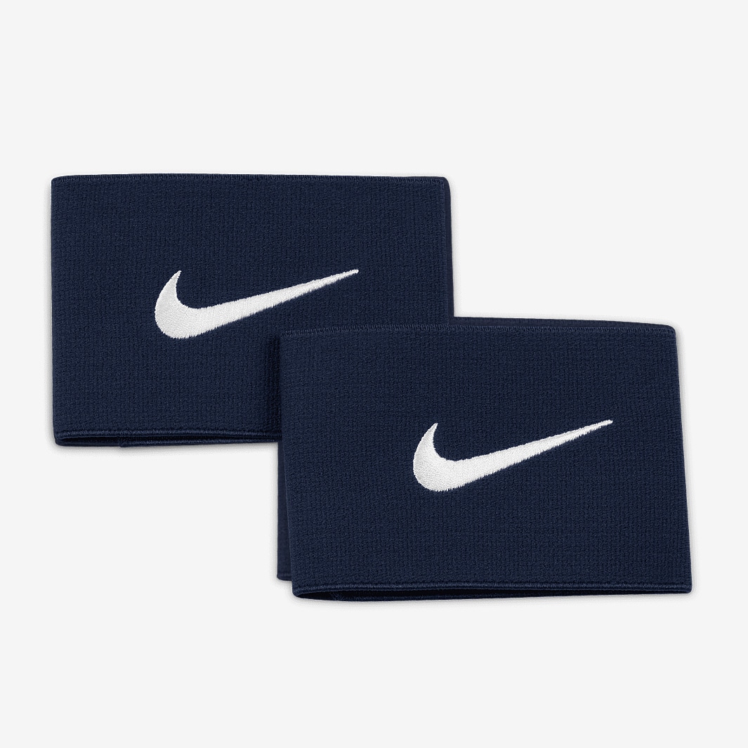 Keep your shinguards in place with Nike Guard Stay II shinpad straps in NavyWhite. Wear them below or at the base of your shinguards to prevent them from slipping. Made from stretchy, lightweight material, the straps comfortably wrap around your leg, while a hookandloop closure lets you adjust the fit. Soft elastic stretches for a supportive feel A hookandloop closure makes it easy to get the straps on and off Designed to be worn at or below the shinguard for a secure fit 43 polyester, 30 nylon, 27 rubber