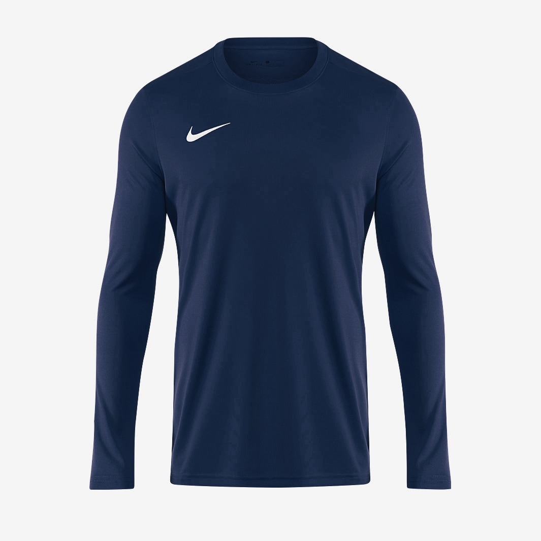Look the part as you reach peak performance in the Nike Junior Park VII LS Shirt in Midnight NavyWhite which has a classic design, a crew neck and DriFIT technology to move moisture from the skin. The Nike Junior Park VII LS Shirt is made with sweatwicking DriFIT material to move moisture away from the skin, keeping players cool, dry and composed.The crewneck collar delivers a modern look and the contrastcolour Swoosh stands out for undeniable sporting style. DriFIT Crewneck collar Nike Swoosh Long sleeves This product is made with 100 recycled polyester fibres