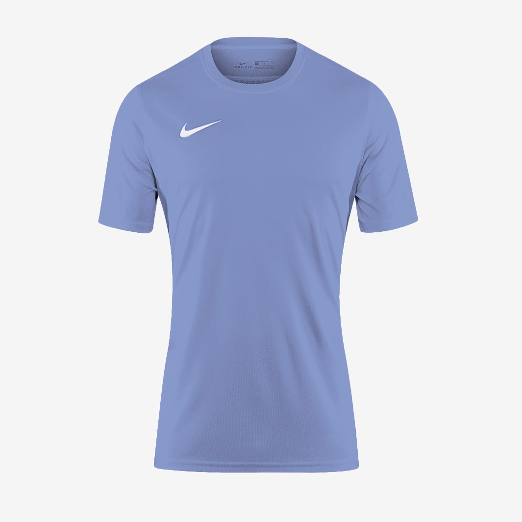 Look the part as you reach peak performance in the Nike Junior Park VII SS Shirt in University BlueWhite which has a classic design, a crew neck and DriFIT technology to move moisture from the skin. The Nike Junior Park VII SS Shirt is made with sweatwicking DriFIT material to move moisture away from the skin, keeping players cool, dry and composed. The crewneck collar delivers a modern look and the contrastcolour Swoosh stands out for undeniable sporting style. DriFIT Crewneck collar Nike Swoosh Short sleeves This product is made with at least 75 recycled polyester fibers