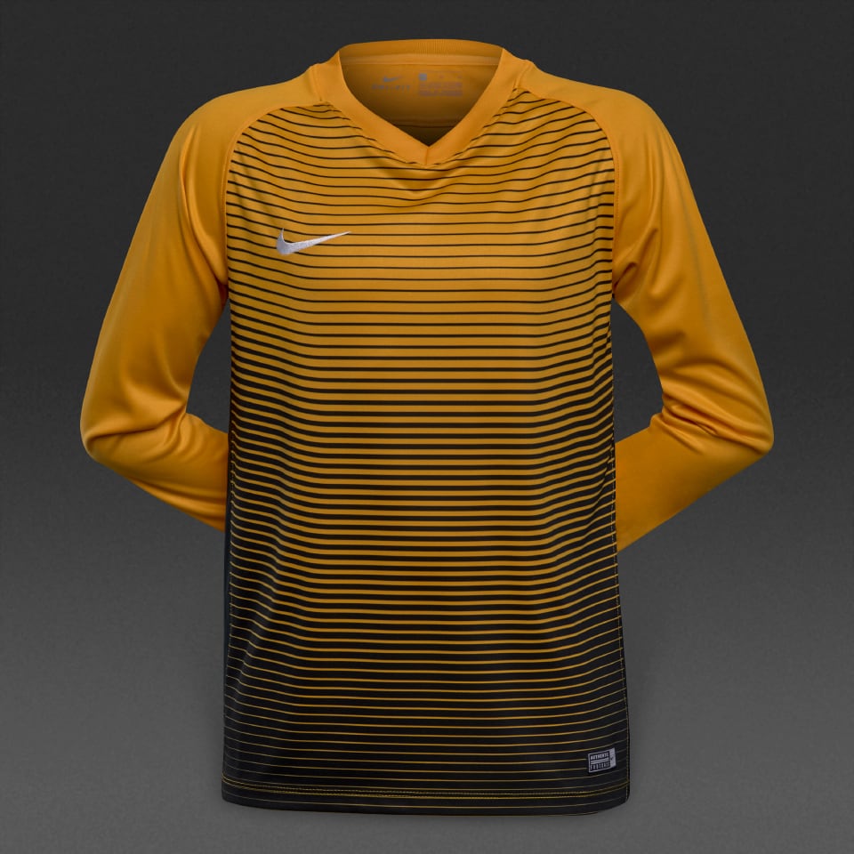 Constructed from lightweight fabric, the Nike Junior Precision IV LS Shirt in GoldBlack will keep you cool and comfortable. Inspired by designs worn by international and club sides and manufactured to the same specification, the Nike Junior Precision IV LS Shirt benefits from sweatwicking fabric to keep you dry and comfortable.Utilising the latest lightweight and durable materials, it features innovative technologies engineered to enhance the performance of your team on the pitch. Long Sleeve Nike Swoosh DriFIT technology