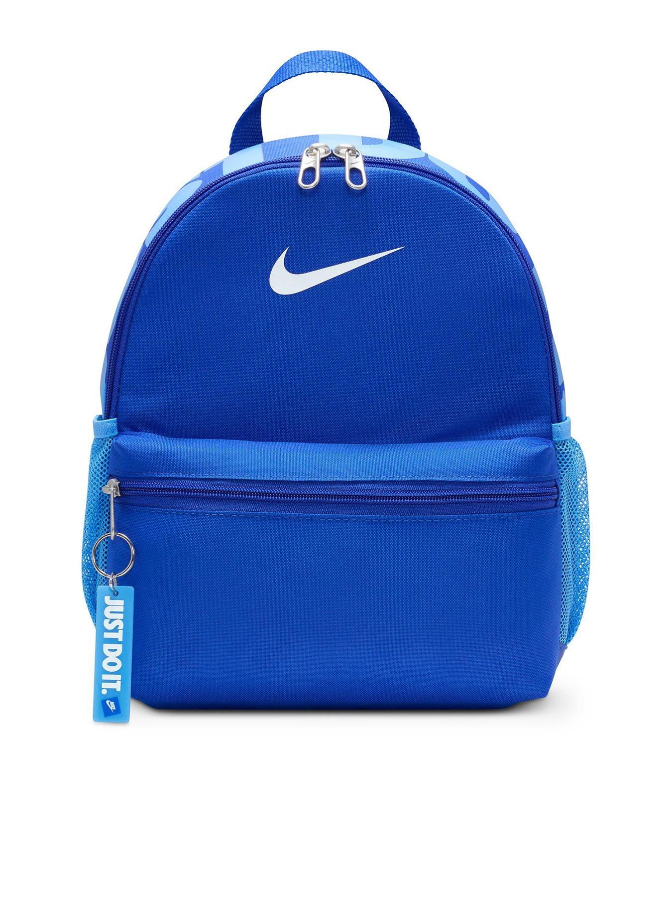 Kids Brasilia JDI Mini Backpack 11L by Nike Size & Fit Dimensions: Height 13 inches x Width 10 inches x Depth 5 inches Capacity: 11L Details End Use: Sportstyle Brasilia JDI Kids Mini Backpack 11L by Nike Colour: Game Royal / University Blue / White NikeBrasilia JDI kids' mini backpack is a small but mighty bag for adventures school and everyday essentials Spacious double-zip main compartment stores daily essentials Smaller front pocket keeps quick-grab items close Side pockets hold a water bottle or other small essentials Padded adjustable shoulder straps provide comfortable carrying Just Do It keychain and screen print add signature Nike swag Compact size makes it easy for everyday use Material & Care Material Content: 100% Polyester Washing Instructions: Wipe Clean