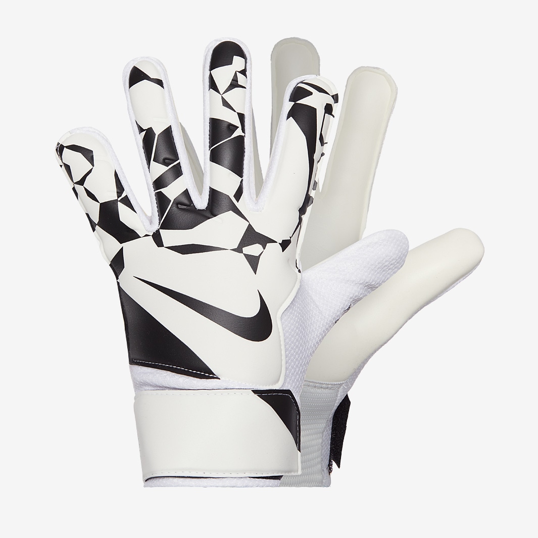 Help your side to victory with the Nike Kids GK Match Goalkeeper Gloves in WhiteBlackBlack, which are perfect for kickabouts or training with your team thanks to the smooth latex foam on the palm that creates grip in varied conditions. The Nike Kids GK Match Goalkeeper Gloves feature plush padding to cushion your hands from ball impact and gives grip on fastspinning balls in wet or dry conditions. A flat palm cut ensures maximum latex to ball contact as perforations at the fingers enhance airflow and the hookandloop wristband adjusts for a snug, secure fit. Smooth latex foam on the palm creates grip in varied conditions Mesh panels enhance airflow Strategic padding helps absorb ball impact Adjustable wristband for a snug, secure fit Materials 33 latex, 40 polyester, 21 EVA, 6 nylon
