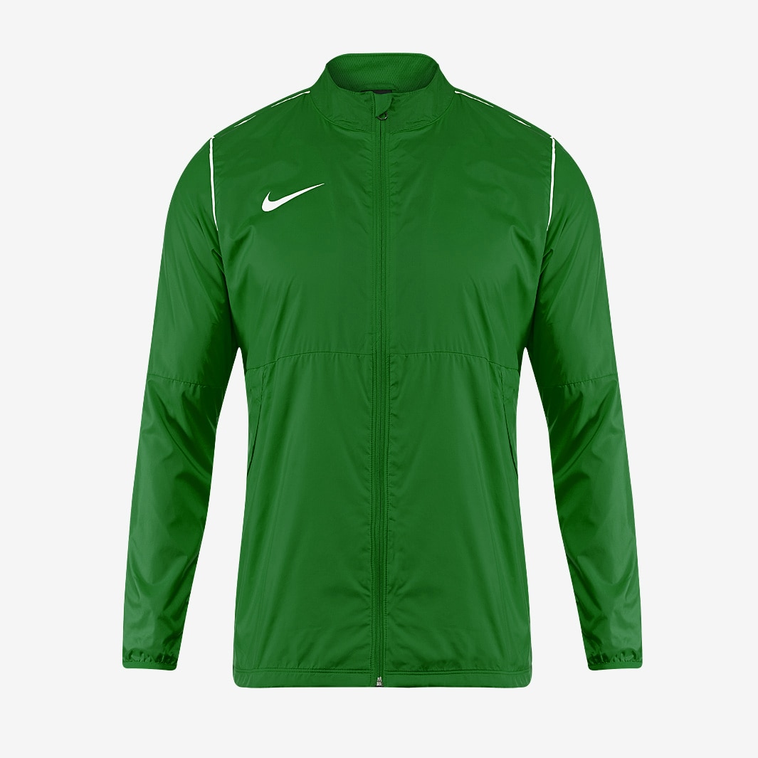 Stay sheltered from the rain while you train with the Nike Park 20 Rain Jacket in Pine Green, made with water resistant fabric and utilising the latest sweatwicking DriFIT technology to keep you dry and comfortable. The Nike Park 20 Rain Jacket is made to keep you dry when youre on the pitch with its waterresistant fabric and featuring sweatwicking DriFIT technology. The shoulder piping detailing gives this jacket that classic soccer style. Water resistant fabric DriFIT technology helps you stay dry and comfortable Fullfront zipper Setin sleeves Dropped back hem Stitched shoulder stripes provide classic soccer look Front pockets Fabric 100 polyester This product is made with at least 75 recycled polyester fibres