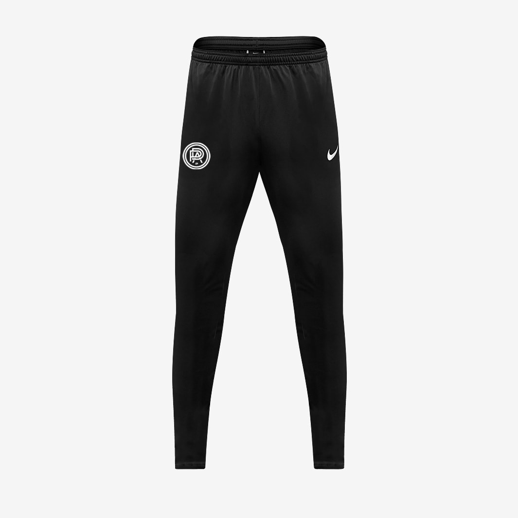 Tapered for speed and accuracy, the streamline design of the PDA Nike Academy 18 Training Pant reduces bulk, providing enhanced mobility and a distractionfree performance while youre on the playing field. The PDA Nike Academy 18 Training Pant in Black is a slim cut design with tapered legs to allow for extra speed and reduce bulk. These trousers feature sweatwicking DriFIT technology to keep you dry and comfortable while you hone your skills. Nike DriFIT fabric wicks away sweat Side pockets provide convenient storage on the move Elastic calf panels make for easy onandoff Elastic waistband with contrastcoloured lining and draw cord provides a custom fit Slim cut with a tapered leg reduces bulk Elastic calf panels stretch to fit over your boots when changing 100 Polyester