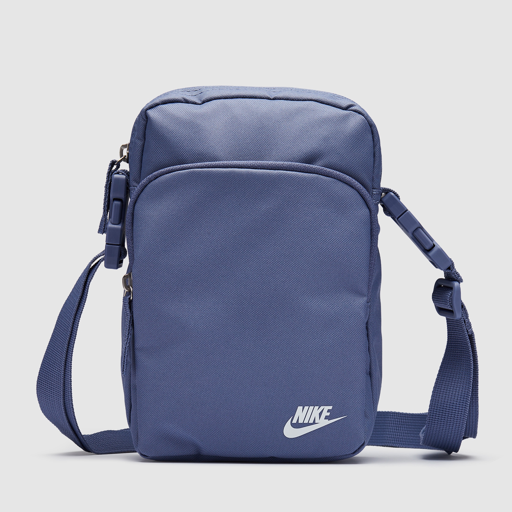Designed to be worn across the chest as an alternative to the classic hip pack style, the Nike Sportswear Heritage Crossbody Bag 4L in World IndigoWhite lets you carry your gear in style. The Nike Sportswear Heritage Crossbody Bag 4L offers hands free storage with an easy to adjust strap for everyday use.It features a main pocket, and a separate accessories pocket for easy organisation. Zippered main pocket helps keep your bigger items organized and stored securelyZippered accessories pocket provides secure smallitem storageAdjustable strap provides a personalized fitDimensions 9 H x 7 W x 3 D 22.9 X 17.8 X 7.8cmVolume 4 LBody 69 nylon31 polyester. Lining 100 polyesterSpot clean