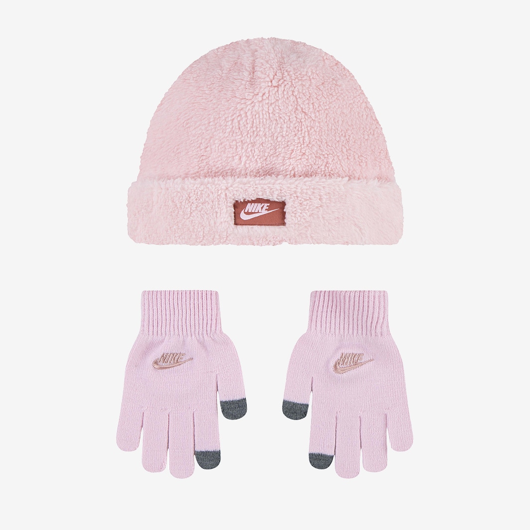 Nike Sportswear Younger Kids Cozy Pink Beanie Gloves Set 8 15Y