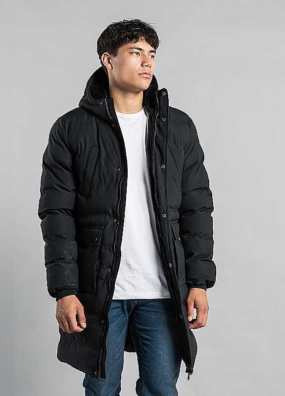 Nines Longline Funnel Neck Hooded Padded Jacket - Black - Size XL