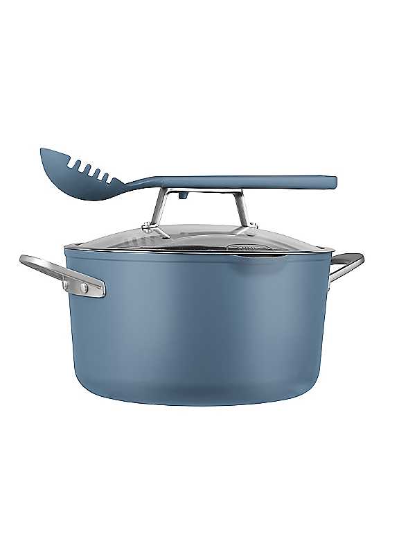 Everything you need to make it possible. 8 ways to cook in one versatile pot:Steam, Simmer, Roast, Braise, Bake, Saut©, Sear and Boil your way to hearty roasts, light bites, simple snacks, home-baked treats and more - from roasted lamb shank to a deep-dish rhubarb crumble. . The PossiblePot can replace 5 pieces of cookware - use it as a stock pot, saucepan, roasting pan, baking dish and steamer.Go from hob to oven to table:Oven safe up to 260°C and suitable for all hob types, including induction. Start your creation on the hob, finish it in the oven, then serve straight from the elegant matte pot which doubles as a stylish serving dish. Integrated roasting/steaming rack & utensil:This all-in-one pot is thoughtfully designed with an integrated stainless steel roasting/steaming rack. The extra-large 6.6L capacity fits a whole 2.2kg roast chicken. All parts nest together for space-saving storage. The heat-tempered glass lid features a built-in strainer to easily drain pasta, and a multifunctional utensil that can be used both as a ladle and pasta fork.ZEROSTICK Technology:Zero stick, chip or flake. Why settle for non-stick when you can have ZEROSTICK? Durable and long-lasting, Ninja ZEROSTICK combines ultra-high heat plasma ceramic bonding with an exclusive coating that stays chip, flake and peel free. ZEROSTICK stops food from sticking day after day - cook using little to no oil and watch the food slide from the pan to your plateg. PFOA, lead & cadmium free for your peace of mind.Easy to use:This large cooking pot features cast stainless steel handles and two pour spouts. Crafted from forged aluminium to quickly distribute and retain heat for even cooking and excellent searing, the PossiblePot is metal utensil safe, scratch resistant and dishwasher safe for easy clean-up.Covered by Ninja's 10 Year Replacement Guarantee, including the ZEROSTICK coating*. (*Upon registration with Ninja. When used as directed in the use and care guide.) Brand: Ninja