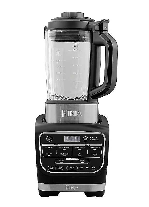 A BLENDER FOR ALL SEASONS - More than a soup maker, quickly and easily make hot and cold creations in this 2-in-1 blender. Blending and cooking at the same time, enjoy a delicious variety of food and drinks from chunky and smooth soups, pasta sauces and homemade jams to delicious desserts, smoothies and frozen cocktails. COOK SOUP IN 20 MINUTES - A built-in heating element rapidly cooks fresh ingredients to perfection. Whether you prefer creamy tomato, hearty vegetable or soothing chicken-noodle soup, cook your favourite soup recipes from fresh ingredients in the jug and serve straight to the table! Smooth or chunky, exactly how you like it.CHOP & SAUTE - Dedicated Pre-Cook settings quickly chop and saute ingredients directly in the jug for maximum flavour with minimum effort. Perfect for preparing onions and fresh herbs before cooking.BLEND HOT & COLD - Powerful blending. Driven by an impressive 1000-watt motor, Ninja's purposefully-designed High Speed Crushing Blade easily blends both hot and cold ingredients, including fibrous fruit and vegetables, nuts, seeds and even ice.NO MORE GUESSWORK - 10 Auto-iQ programmes do the hard work for you, combining pre-set pulse, pause and blend patterns with precise temperature controls. Want to get creative? Take control with 6 manual settings.PREMIUM-QUALITY, HEAT-RESISTANT GLASS JUG - Non-stick coating for easy cleaning and no taste transfer. Blend up to 1.7L cold and 1.4L hot.SPLASH-FREE LID WITH BUILT-IN MEASURING CUP - Easily add extra ingredients. Safety features ensure blending stops if the lid is removed.EASY TO CLEAN - Dedicated cleaning programme rinses out the jug at the touch of a button. Includes a purposefully-designed Cleaning Brush to safely clean around the blades.INCLUDES INSPIRATIONAL RECIPE GUIDE - Packed with delicious hot and cold recipe ideas to get you started.Ninja guarantee - For your peace of mind, Ninja offers a free 2-year guarantee upon registration (UK & ROI only).Brand: NinjaH45 x W20 x D21.5cm5.6Kg