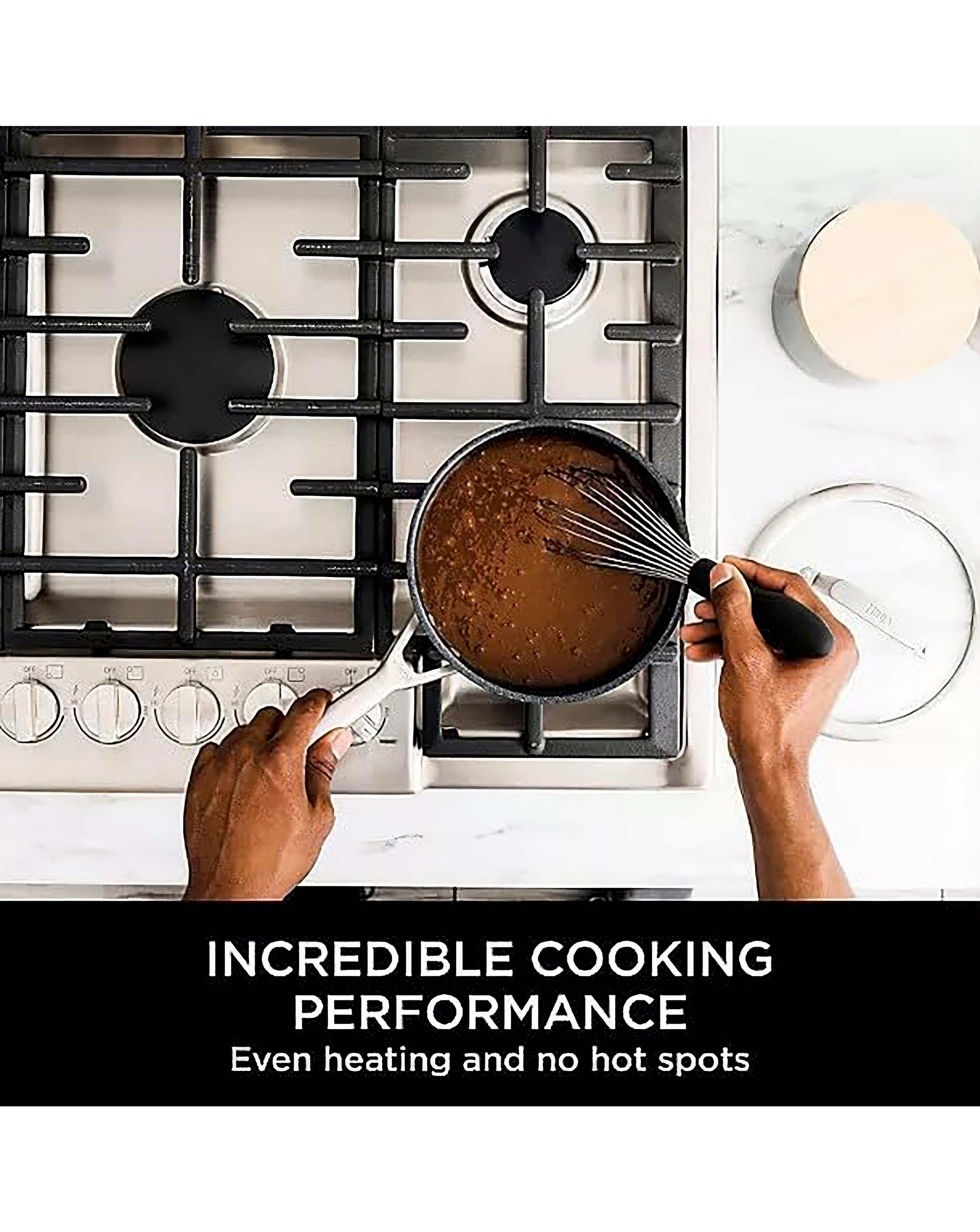 This Ninja ZEROSTICK Stainless Steel saucepan is perfect for confident chefs and kitchen newcomers alike. Zero stick, chip or flake - Whereas other pans can rapidly lose their non-stick performance, Ninja ZEROSTICK is up to 20x tougher than traditional non-stick (3rd party test lab coating abrasion testing 2022). Durable, long-lasting, and covered by Ninja's 10 Year Replacement Guarantee, including the ZEROSTICK coating (Upon registration with Ninja. When used as directed in the use and care guide). Stainless steel collection - The best of both worlds, this elegant range is expertly crafted from polished stainless steel with an aluminium core, delivering even heat distribution and excellent high-heat searing. Complete with cast stainless steel handles that are comfortable to hold. The difference is in the degrees - ZEROSTICK is precision engineered at 17,000C, fusing plasma ceramic particles to the surface of the pan to create a robust textured surface that interlocks with Ninja's exclusive coating. The extremely durable, textured cooking surface is metal-utensil safe, scratch resistant and dishwasher safe for easy cleaning. PFOA, lead and cadmium free. 10-Year Guarantee - Covered by Ninja's 10 Year Replacement Guarantee, including the ZEROSTICK coating. Cook using little to no oil - Exclusive to Ninja, ZEROSTICK stops food from sticking day after day, so your creations easily slide from the pan to your plate - sear like you can in stainless steel, without sticking. Perfectly cooked results - Designed to withstand high-heat cooking, even heating and no hot spots deliver consistent results. Induction compatible: Suitable for all hob types including induction, gas, electric and ceramic. This 16cm saucepan is suitable for a 13cm induction ring. Oven safe to 260C - Start your creation on the hob, finish to perfection in the oven. Perfect for giving your creation a bubbling, crispy topping or simply keeping your food warm. Dishwasher Safe.