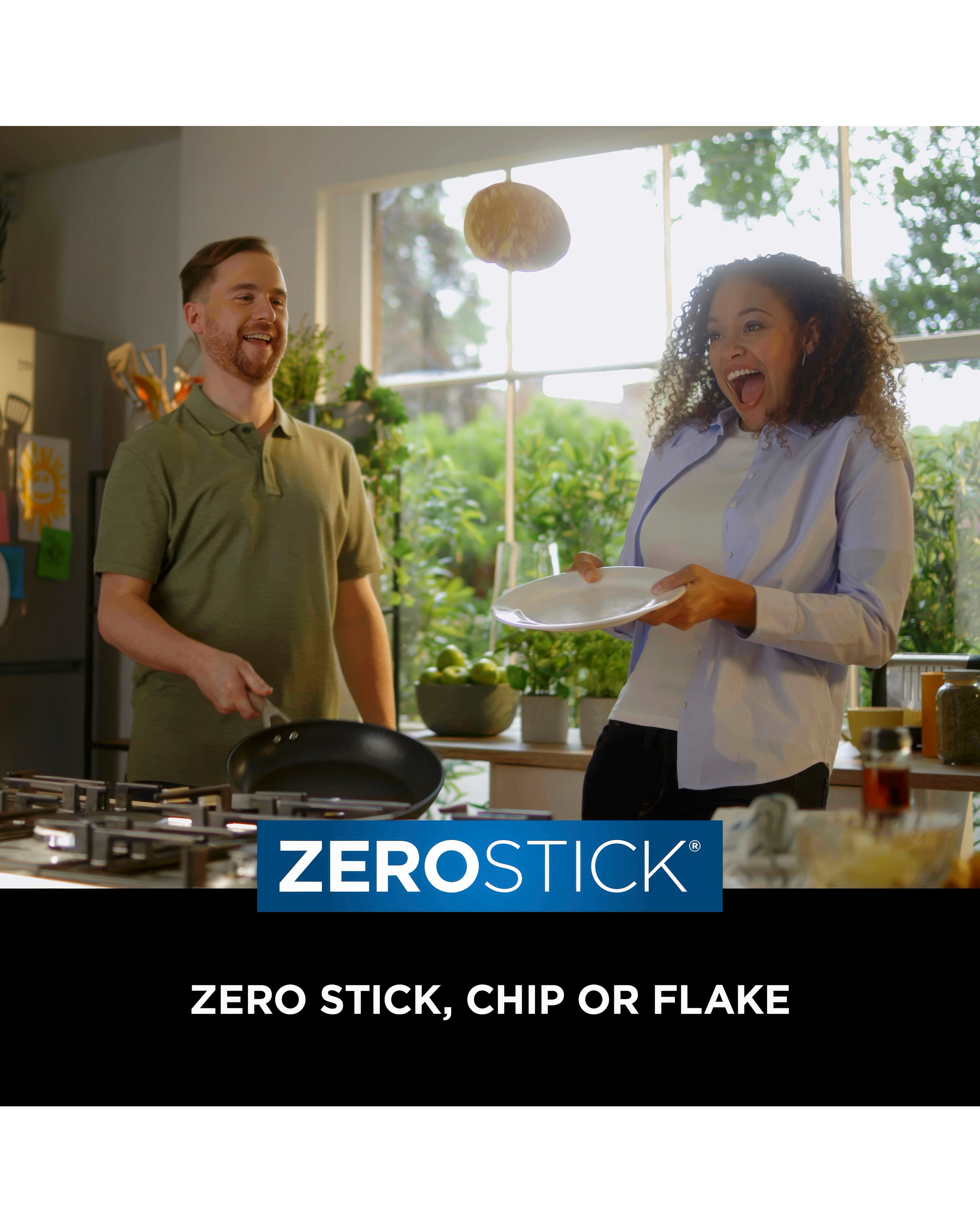 Your new kitchen essentials, designed for every day. Zero stick, chip or flake: Why settle for non-stick when you can have ZEROSTICK? Whereas other pans can rapidly lose their non-stick performance, Ninja ZEROSTICK is up to 20x tougher than traditional non-stick, tested to withstand 10,000 scrubs (3rd party test lab coating abrasion testing 2022). Durable, long-lasting and guaranteed for 10 years. The difference is in the degrees: ZEROSTICK is precision engineered at 17,000C, fusing plasma ceramic particles to the surface of the pan to create a robust textured surface that interlocks with Ninja's exclusive coating. The extremely durable, textured cooking surface is metal-utensil safe, scratch resistant and dishwasher safe for easy cleaning. PFOA, lead and cadmium free. 10-Year Guarantee: Covered by Ninja's 10 Year Replacement Guarantee, including the ZEROSTICK coating (Upon registration with Ninja. When used as directed in the use and care guide). Built to last: The Essentials collection is made from forged aluminium with a smooth exterior and stainless steel handles that are comfortable to hold. Cook using little to no oil: Exclusive to Ninja, ZEROSTICK stops food from sticking day after day, so your creations easily slide from the pan to your plate. Induction compatible: Suitable for all hob types including induction, gas, electric and ceramic. This 30cm frying pan is suitable for a 20cm induction ring. Do you use an induction hob? Did you know the size of your pan can affect cooking performance? Always make sure you choose pans that are the same size as your hob ring, as induction technology only works effectively if the base of the cookware matches the size of the ring on the hob. If your pan base is smaller than the hob ring, it may not be recognised. Oven safe to 260C: Start your creation on the hob, finish to perfection in the oven. Ideal for giving your omelette a bubbling topping or simply keeping your food warm. Dishwasher safe.