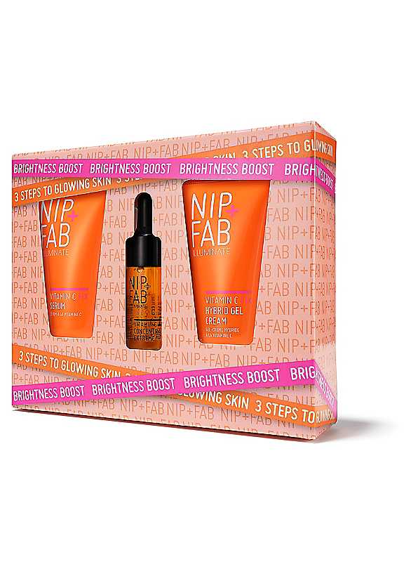 The set contains 3 large deluxe sized products, these are not your average mini product. It includes our Vitamin C Fix Concentrate 10ml (1/3 the size of our full sized product), plus our Vitamin C Fix Serum 20ml and Vitamin C Fix Hybrid Gel Cream 20ml, both 40% the size of our full sized products. If all 3 products are used every day in either your morning or night routine, the set contains between 2-4 weeks of use depending on application volume. Nip + Fab Vitamin C Fix uses balanced, multi-ingredient formulas to deliver results, these are not single active ingredient products, they have all-round benefits with a focus on increasing glow, revitalising the skin and keeping skin healthy. Our formulas have been developed to harness the power of vitamin c and ensure its efficient absorption to the skin. The formula includes the amplifying effects of powerhouse antioxidant ferulic acid to work alongside the vitamin C, niacinamide to even out skin tone and support a smoother skin texture plus hydrating panthenol and hyaluronic acid. What's included?- Vitamin C Fix Concentrate 10ml - A lightweight concentrate which absorbs super quickly as your first layer post cleansing. - Vitamin C Fix Serum 20ml: - A balm-like serum which works beautifully on all skin types to hydrate and brighten. - Vitamin C Fix Hybrid Gel Cream 20ml: - A lightweight but hydrating gel-moisturiser, perfect for us in the morning and evening. How to Use: - For best results, use these products across your AM & PM routines Morning Routine - Cleanse: Start by thoroughly cleansing your face with your favourite cleanser - we recommend our Ceramide Fix Cleansing Balm Apply Vitamin C Fix Concentrate: After cleansing, apply the Vitamin C Fix Concentrate across your face & neck Follow with a barrier-supporting serum: We recommend using our Ceramide Fix Serum 12% to strengthen your skin's barrier Moisturise with SPF: Finish your morning routine with a moisturiser containing SPF, we recommend our Glow Moisturiser SPF30, to protect your skin from UV damage Evening Routine - Double Cleanse: Begin with a double cleanse to remove makeup, dirt, & impurities Apply Vitamin C Fix Serum: After cleansing, apply the Vitamin C Fix Serum across your face & neck Use Vitamin C Fix Hybrid Gel Cream: As your final step before bed, apply the Vitamin C Fix Hybrid Gel Cream to lock in moisture & keep your skin hydrated overnight