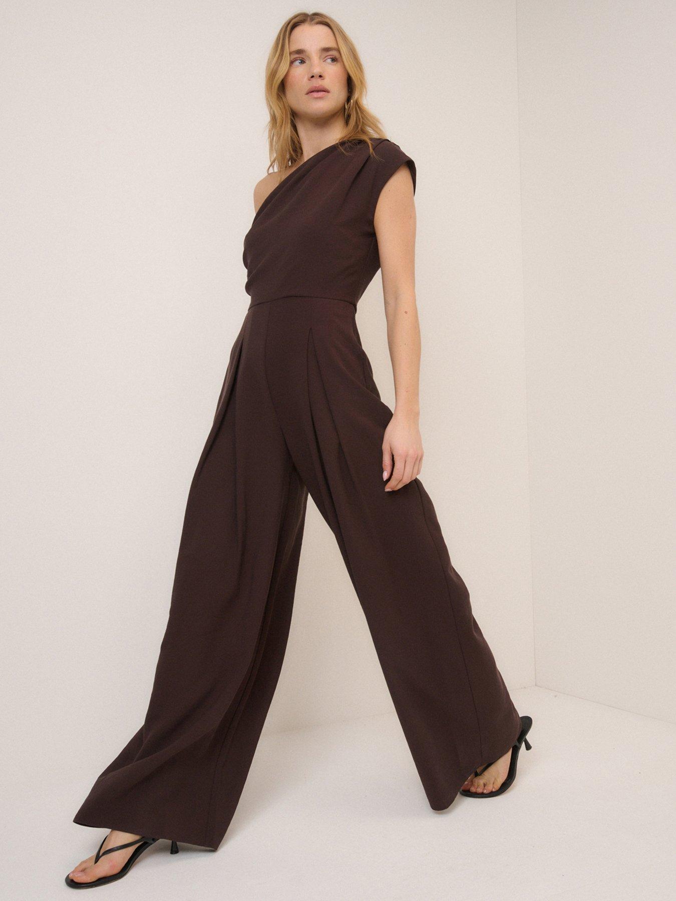 Nobodys Child Sanaria One Shoulder Jumpsuit Size & Fit True To Size - Order Your Usual Size Wide Leg Available In Sizes 6 - 18 Details Sanaria One Shoulder Jumpsuit By Nobodys Child Brown One-Shoulder Style Sleeveless Pleats Concealed Zip Fastening Material & Care Material Content: 92% Viscose, 8% Polyester