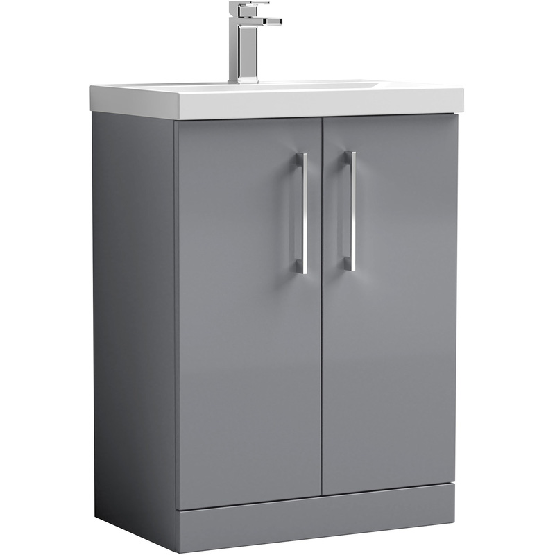 Nuie Arno Double Door Floor Standing Vanity Unit Satin 600mm With Slim Edge Basin in Grey | MFC