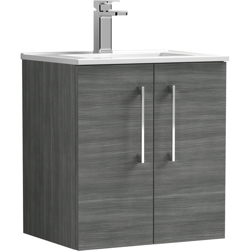 Nuie Arno Double Door Wall Hung Vanity Unit 500mm With Minimalist Basin in Anthracite | MFC