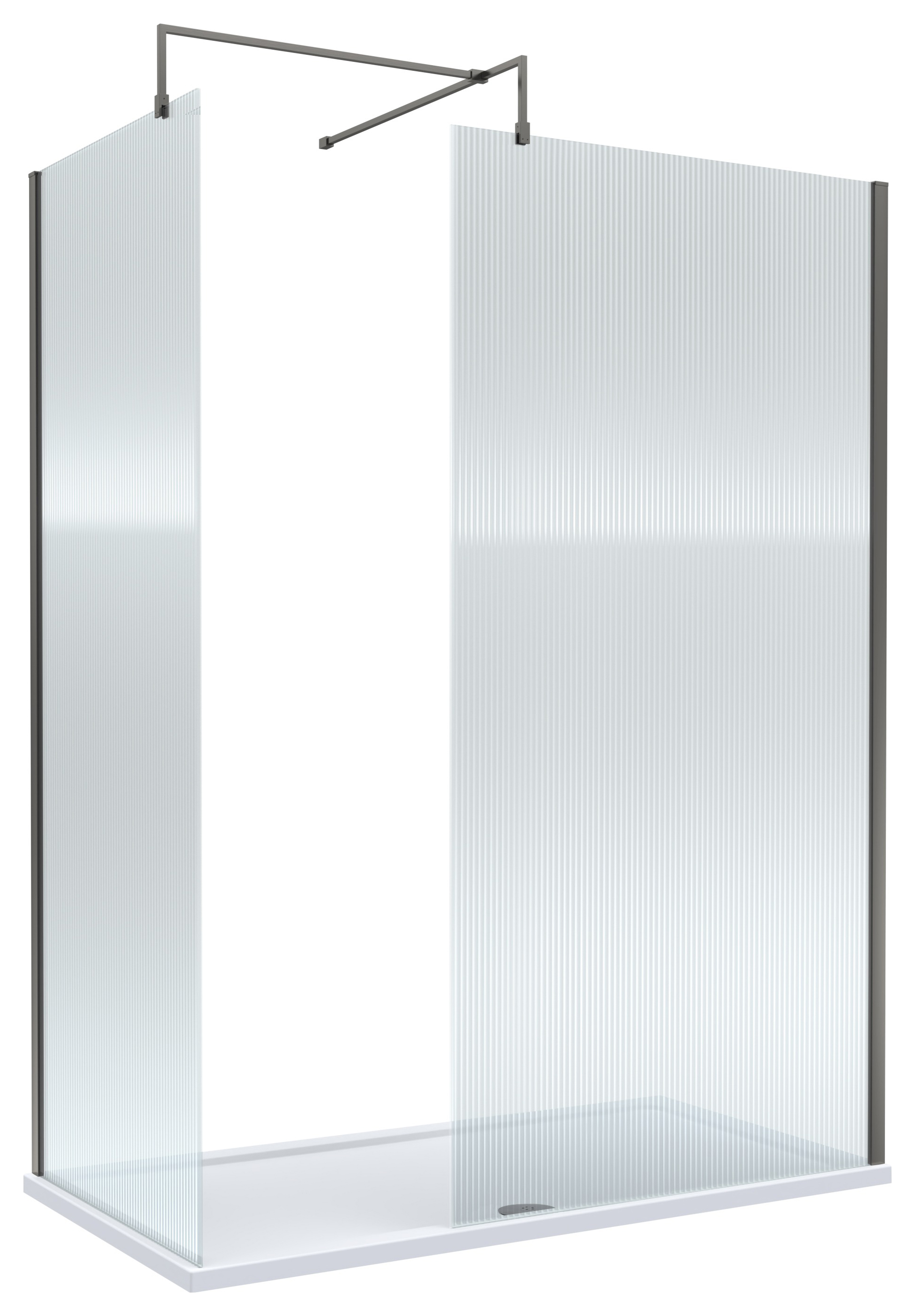 Nuie Brushed Pewter Fluted Wet Room Screen, Shower Tray & Waste - 1500 x 800mm