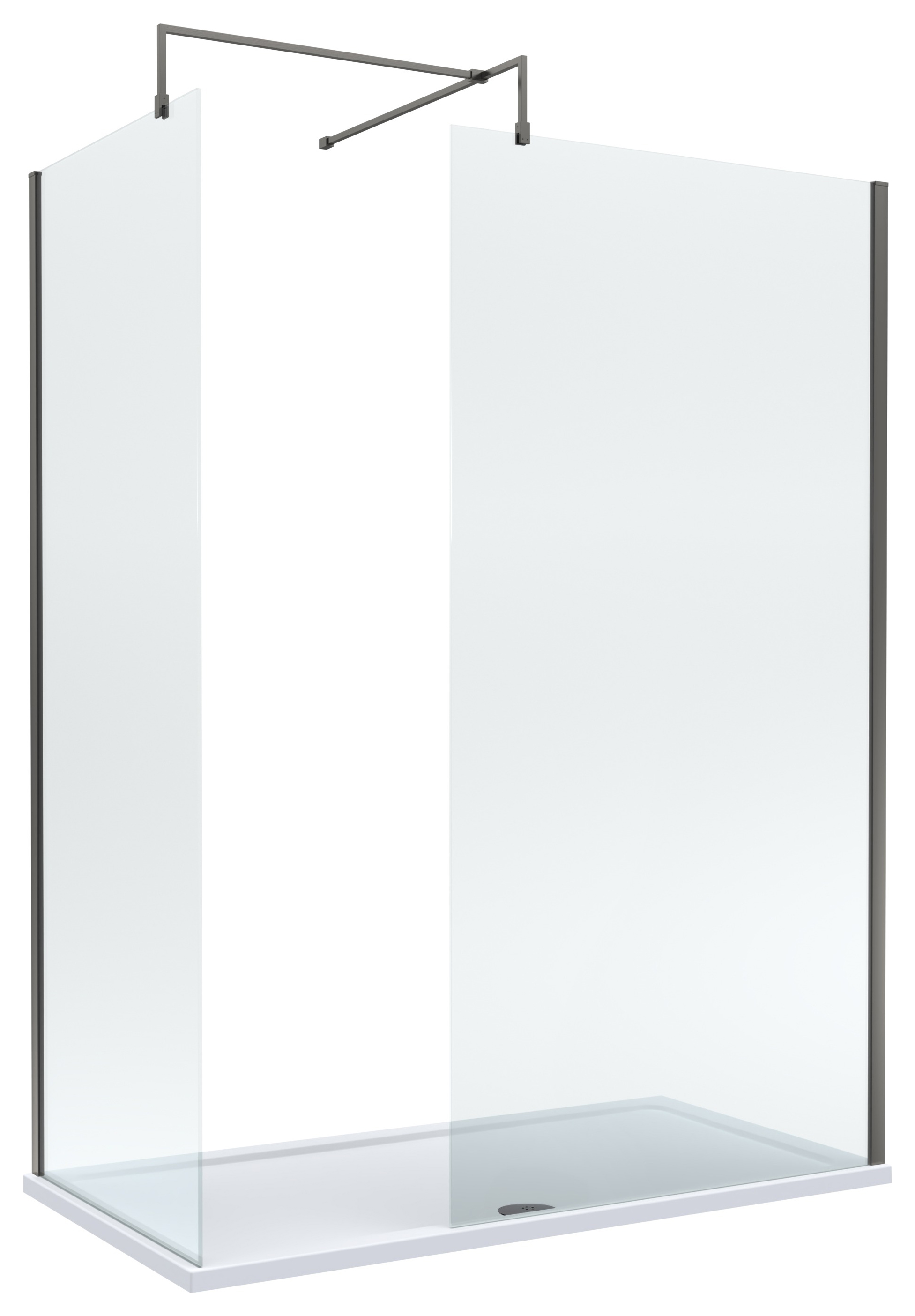 Nuie Brushed Pewter Wet Room Screen, Shower Tray & Waste - 1500 x 800mm - A modern walk-in bundle, allowing you to create a luxurious showering space, giving you a spa like experience in your own home. Each shower tray is manufactured from high quality materials, here in Great Britain, to the highest quality and standards. The walk-in screens are manufactured from 8mm toughened safety glass with a modern aluminium profile.
