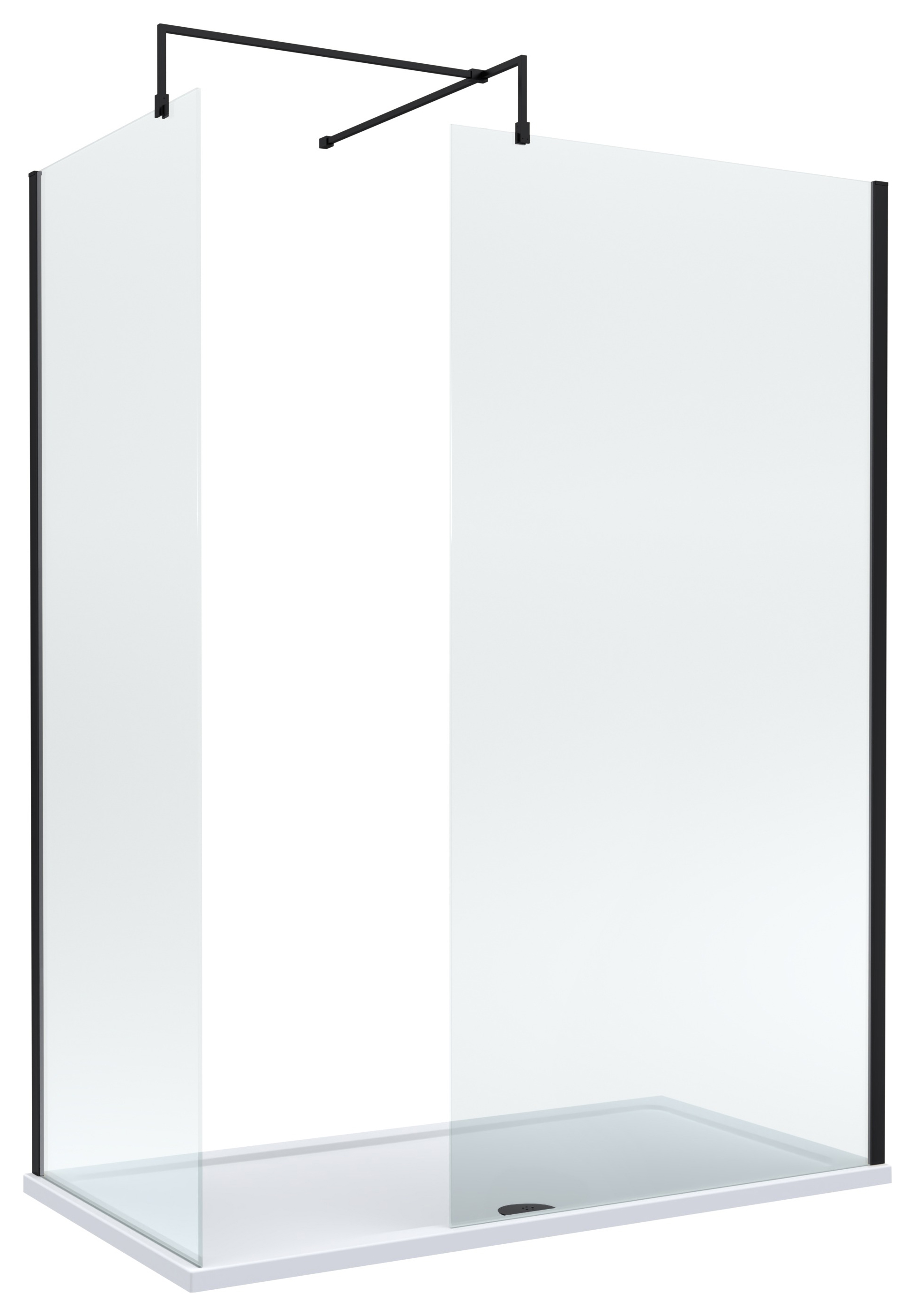 Nuie Matt Black Wet Room Screen, Shower Tray & Waste - 1600 x 700mm - A modern walk-in bundle, allowing you to create a luxurious showering space, giving you a spa like experience in your own home. Each shower tray is manufactured from high quality materials, here in Great Britain, to the highest quality and standards. The walk-in screens are manufactured from 8mm toughened safety glass with a modern aluminium profile.