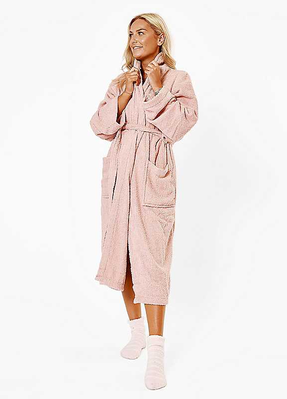 OHS Towel Bath Robe Dressing Gown - 100% Cotton - Blush - Size ONE SIZE