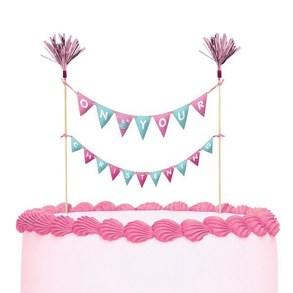 On Your Christening Cake Topper Bunting - Pink - 230 x 240mm - single