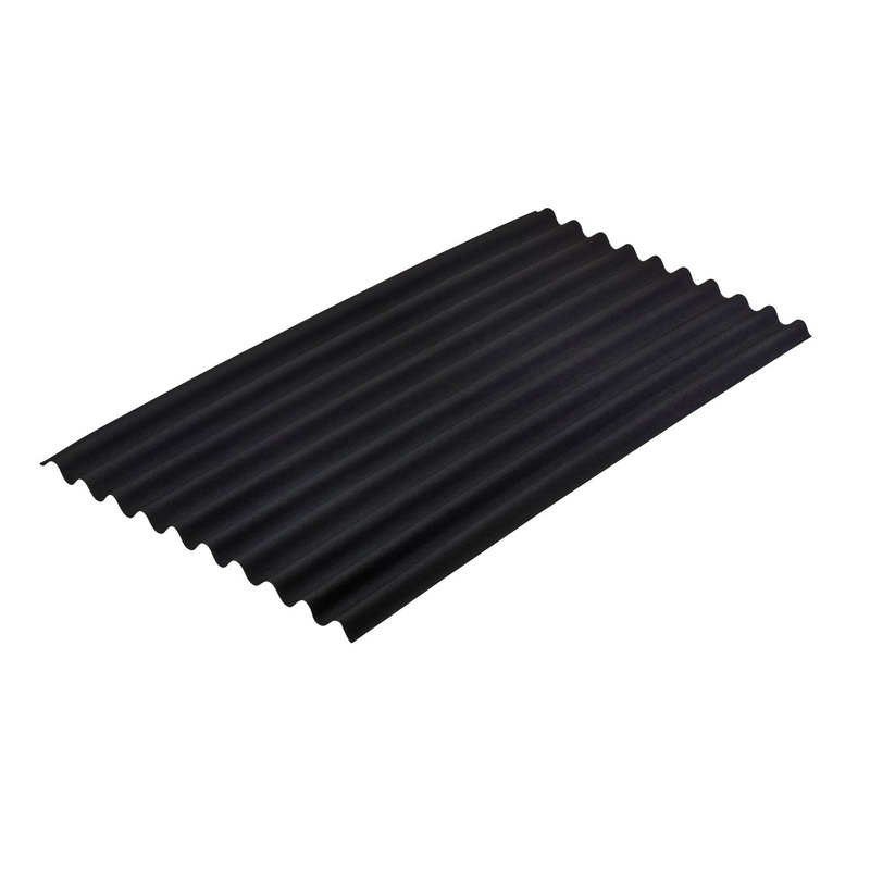 This corrugated sheet is part of the Onduline Classic bitumen roofing range – a robust, reliable and long-lasting solution for garden structures and other non-habitable outbuildings. Made using a unique technology combining cellulosic fibres and selected bitumen, the roofing sheet offers exceptional waterproofing alongside high resistance to all kinds of weather – anything from rain and snow to heatwaves, while also providing UV resistance and helping with noise reduction. This black bitumen roof sheet is easy to handle and simple to cut for a fast, hassle-free installation. Guaranteed watertight for 15 years when fitted with Onduline ridges, verges and fixings – sold separately. * 2000 x 950mm corrugated sheet – surface area of 1.9m² * 3mm thickness – for garden or non-habitable buildings * Bitumen sheet – guaranteed watertight for 15 years * High durability – able to withstand most weather conditions * Lightweight – easy to carry around site at only 3kg/m² * Easily cut to size – reduces installation times on site * 15-year watertight guarantee from Onduline – T&Cs apply | Onduline Classic Bitumen Corrugated Roof Sheet 2000 x 950mm 5 Pack (5 Pack) in Black