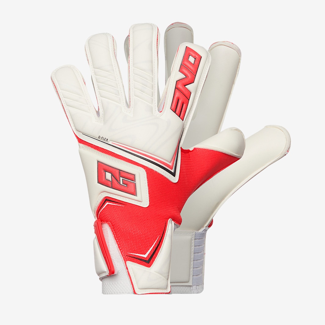 Take your game to the next level with ONE Kids NXT Pro Doubters Hyla Cut goalkeeper gloves in RedWhite. The result of two years of intensive research and development, the ONE NXT provides unrivalled comfort and fit, picking up the mantle as the brands goto series for keepers who prefer a more protective, padded glove. ONE have been in the lab obsessing over the smallest details, from the elasticity of the wrist to the length of the strap, finessing every element to get the design just right. On the Pro edition, theres Pro Grade Contact latex on the palm for outstanding grip and control, while the DFLEX punch shield on the back allows natural movement of the hand. That extended wrap around the side of the backhand, showing off the new OG logo, has a secondary effect of giving an even more secure fit during play. The inside of the glove features ONEs latest Echo Form 2.0 system, which fine tunes the number and placement of the silicone elements applied internally at the fingertips, thumb, and palm to prevent slippage. The wrist uses a new Quantum Elastic formula for a tight yet soft feel, while the easily adjustable Reverse Mid Split strap features a rubber tab to avoid friction with the thumb as you lock in. Latex Palm 4mm Pro Grade Contact Latex Body Super soft Cut Hyla flat at base of fingers, stitchless rollfinger at tips Strap Reverse Mid Split latex Wrist Entry Quantum Elastic with improved velcro system Body UrgoTract ergonomic and breathable Extended Palm NEW VPalm Spines No Internal Grip Echo Form 2.0 Elite in dry conditions great in wet good durability