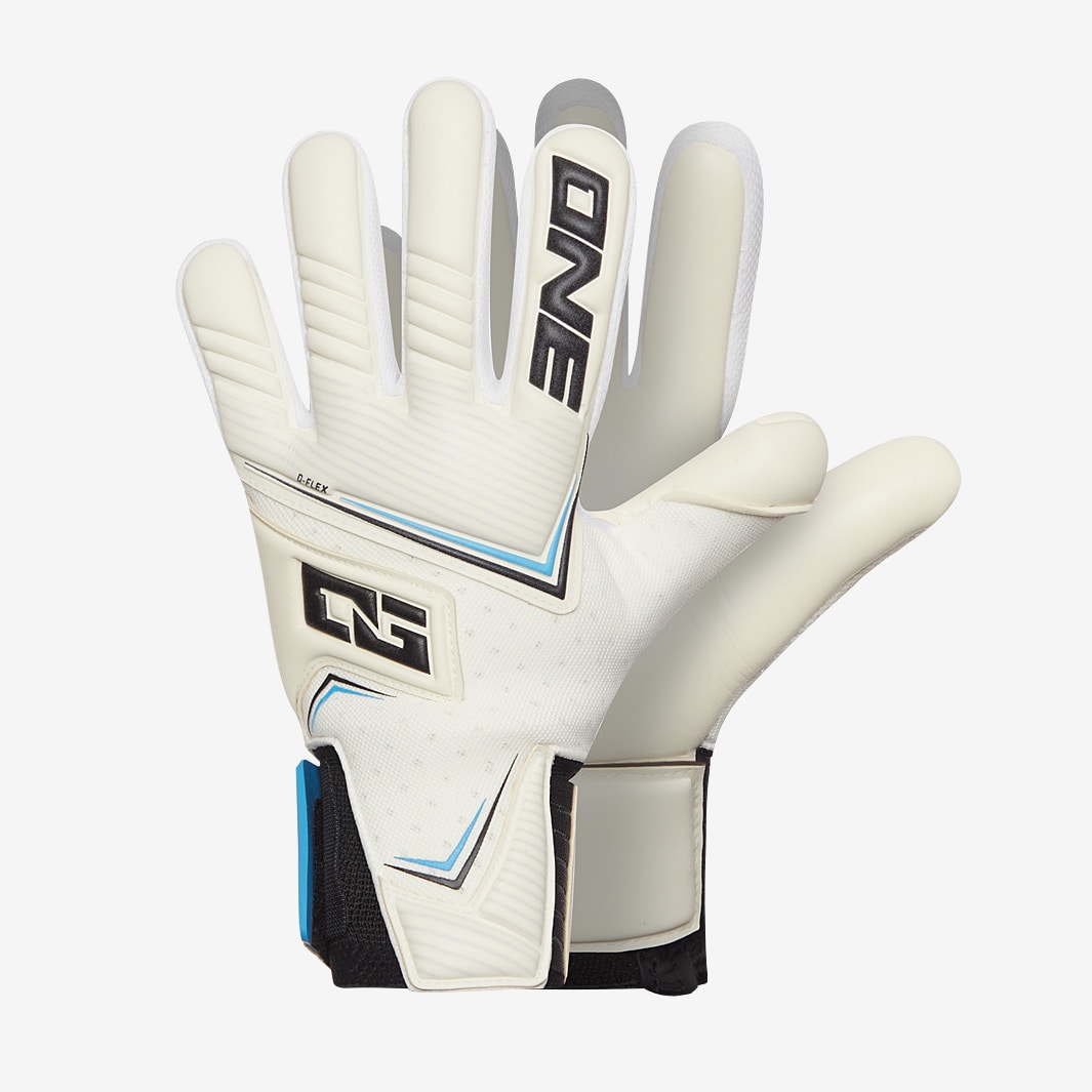 Take your game to the next level with ONE Kids NXT Pro Negative Cut goalkeeper gloves in WhiteBlackBlue. The result of two years of intensive research and development, the ONE NXT provides unrivalled comfort and fit, picking up the mantle as the brands goto series for keepers who prefer a more protective, padded glove. ONE have been in the lab obsessing over the smallest details, from the elasticity of the wrist to the length of the strap, finessing every element to get the design just right. On the Pro edition, theres Pro Grade Contact latex on the palm for outstanding grip and control, while the DFLEX punch shield on the back allows natural movement of the hand. That extended wrap around the side of the backhand, showing off the new OG logo, has a secondary effect of giving an even more secure fit during play. The inside of the glove features ONEs latest Echo Form 2.0 system, which fine tunes the number and placement of the silicone elements applied internally at the fingertips, thumb, and palm to prevent slippage. The wrist uses a new Quantum Elastic formula for a tight yet soft feel, while the easily adjustable Reverse Mid Split strap features a rubber tab to avoid friction with the thumb as you lock in. Latex Palm 4mm Pro Grade Contact Latex Body Super soft Cut Negative Strap NEW Reverse Mid Split latex Wrist Entry NEW Quantum Elastic Body UrgoTract ergonomic and breathable Spines No Internal Grip NEW Echo Form 2.0 Elite in dry conditions great in wet good durability