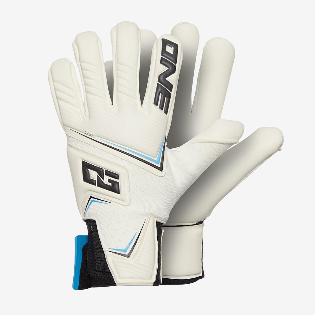 Take your game to the next level with ONE Kids NXT Pro SL Cut goalkeeper gloves in WhiteBlackBlue. The result of two years of intensive research and development, the ONE NXT provides unrivalled comfort and fit, picking up the mantle as the brands goto series for keepers who prefer a more protective, padded glove.ONE have been in the lab obsessing over the smallest details, from the elasticity of the wrist to the length of the strap, finessing every element to get the design just right.On the Pro edition, theres Pro Grade Contact latex on the palm for outstanding grip and control, while the DFLEX punch shield on the back allows natural movement of the hand. That extended wrap around the side of the backhand, showing off the new OG logo, has a secondary effect of giving an even more secure fit during play.The inside of the glove features ONEs latest Echo Form 2.0 system, which fine tunes the number and placement of the silicone elements applied internally at the fingertips, thumb, and palm to prevent slippage.The wrist uses a new Quantum Elastic formula for a tight yet soft feel, while the easily adjustable Reverse Mid Split strap features a rubber tab to avoid friction with the thumb as you lock in. Latex Palm 4mm Pro Grade Contact Latex Body Super soft Cut SL negative lower finger, negative roll tips Strap NEW Reverse Mid Split latex Wrist Entry NEW Quantum Elastic Body UrgoTract ergonomic and breathable Spines No Internal Grip NEW Echo Form 2.0 Elite in dry conditions great in wet good durability