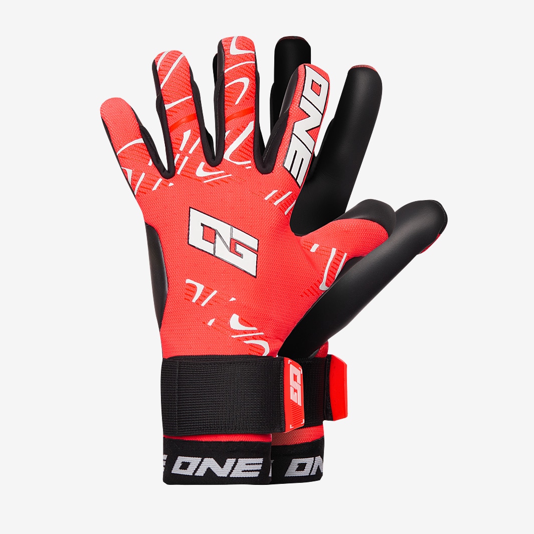 Display your matchwinning agility wearing ONE Kids OG1 Doubters Hyla SL goalkeeper gloves in RedWhiteBlack. Lightweight and formfitting, the OG1 wraps the hand like a second skin, minimising distractions while providing ultimate grip thanks to its elitetier Pro Grade Contact latex. Part of ONEs new generation of gloves, its the successor to the popular GEO series and if you liked the GEO, youll love the OG1. The ergonomic, breathable UrgoTract body has been tweaked to perfection, with adjustments made to the composition and shaping of the material to achieve a superior fit and feel. Every aspect of the glove is streamlined, from the latex wraps and extended palm to the clean and comfortable wrist entry. Theres a removable strap in the pack, of course, for those that prefer a touch of the traditional. On the inside, the glove benefits from the latest Echo Form 2.0 tech, with strategically placed silicone elements at the fingertips, thumb, and palm helping to prevent internal slippage and keep you fully locked in during play. Latex Palm 4mm Pro Grade Contact Cut Hyla SL hybrid cut flat at base of fingers, negative rollfinger at tips, negative thumb Strap Elasticated, double wrap, removable Wrist Entry Quantum Elastic, strapless Body Urgotract ergonomic and breathable Spines No Internal Grip Echo Form 2.0 Improved XWrap locks glove to hand without restriction NEW Extended palm construction Lightweight onepiece construction size 9 weighs just 95g Elite in dry conditions great in wet good durability