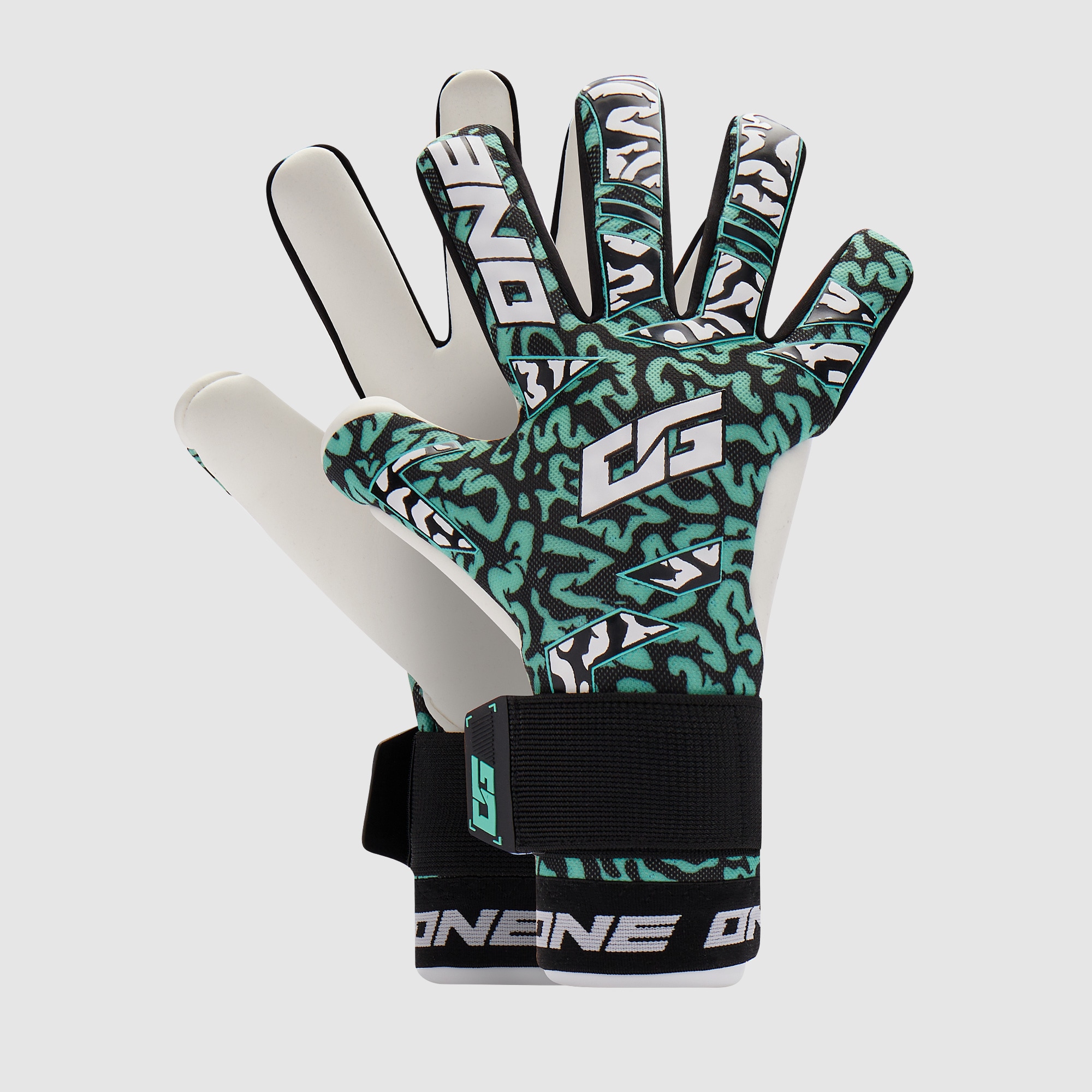 Display your matchwinning agility wearing ONE Kids OG1 Mentality Monster Negative Cut goalkeeper gloves in Mentality MintWhiteBlack. Featuring brainmatter details, the Mentality Monster edition sees you embrace the spotlight, thriving under scrutiny as you shut out the noise and the opposition. Inhuman focus. Allconsuming hunger to win. When your mindsets right, youre a monster. Lightweight and formfitting, the OG1 wraps the hand like a second skin, minimising distractions while providing ultimate grip thanks to its elitetier Cyclone wetweather latex.Part of ONEs new generation of gloves, its the successor to the popular GEO series and if you liked the GEO, youll love the OG1.The ergonomic, breathable UrgoTract body has been tweaked to perfection, with adjustments made to the composition and shaping of the material to achieve a superior fit and feel. Every aspect of the glove is streamlined, from the latex wraps and extended palm to the clean and comfortable wrist entry. Theres a removable strap in the pack, of course, for those that prefer a touch of the traditional.On the inside, the glove benefits from the latest Echo Form 2.0 tech, with strategically placed silicone elements at the fingertips, thumb, and palm helping to prevent internal slippage and keep you fully locked in during play. Mentality Monster edition with brainmatter details Latex Palm 4mm Pro Grade Contact Cut Negative Strap Elasticated, double wrap, removable Wrist Entry Quantum Elastic Body Urgotract ergonomic and breathable Spines No Internal Grip Echo Form 2.0 Improved XWrap locks glove to hand without restriction Extended VPalm construction Lightweight onepiece construction size 9 weighs just 95g Elite in dry conditions great in wet good durability