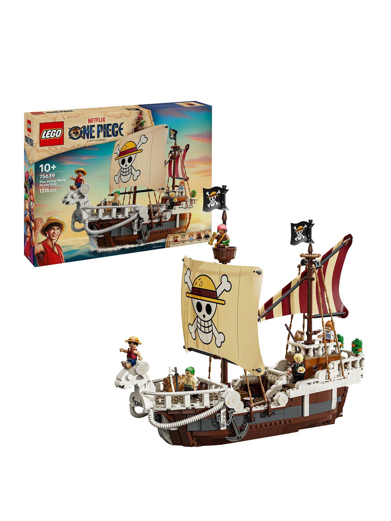 The Going Merry Pirate Ship is a play-and-display model kit filled with authentic details from the ONE PIECE Netflix live-action show The LEGO ONE PIECE Going Merry Pirate Ship toy for 10+ year old boys and girls (75639) is a detailed model that is sure to captivate fans of ONE PIECE adventures and play-and-display building toys. The pirate ship in this ONE PIECE toy has several interior spaces: a crew's cabin, kitchen, storage, and an accessory workshop. The boat model comes with 5 LEGO ONE PIECE minifigures. Luffy sits on the sheep figurehead at the front of the ship, below which is a cannon; Zoro relaxes and trains on the deck; Nami controls the rudder at the rear, where her favourite tangerine trees grow on the deck; Usopp climbs the masts and keeps watch from the crow's nest; and Sanji takes pots down the stairs to the kitchen. Includes 4 'Wanted' posters. The LEGO Builder app lets kids zoom in, rotate models in 3D and track progress. With cool scenes, authentic accessories and iconic characters, this building set makes a great anime gift for 10+ year old boys, girls and creative kids with a passion for the Straw Hat Pirates and LEGO building toys. Contains 1,376 Pieces.