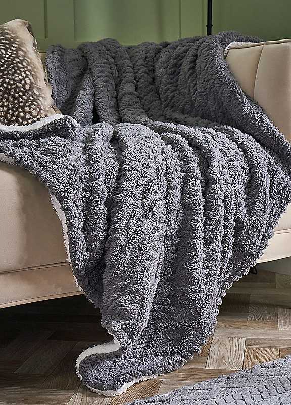 Online Home Shop Cable Knit Sherpa Fleece Throw - Light Grey