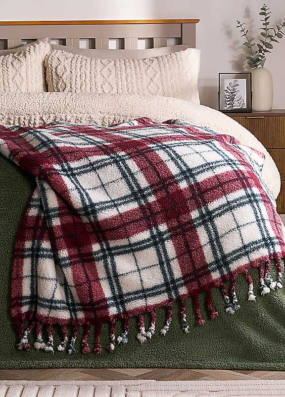 Online Home Shop Check Tassel Sherpa Fleece Throw