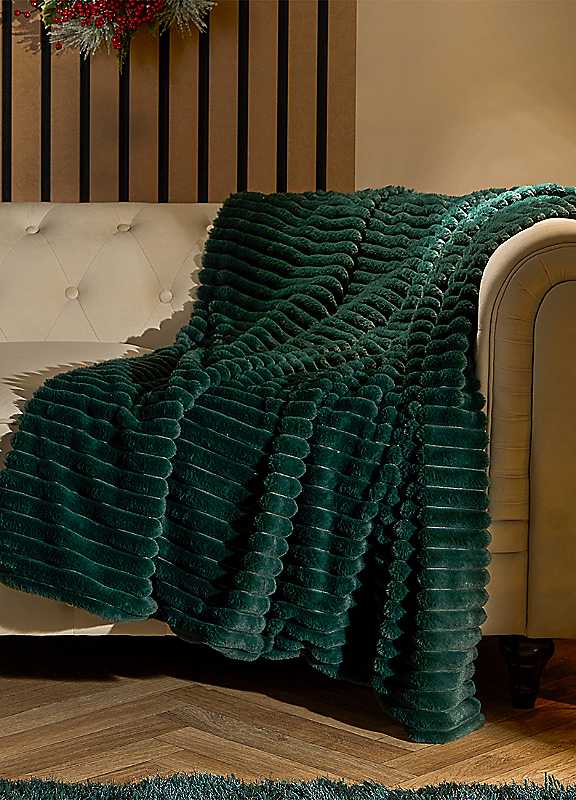 Online Home Shop Faux Fur Ribbed Fleece Throw - Dark Green
