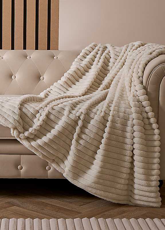 Online Home Shop Faux Fur Ribbed Fleece Throw - Natural