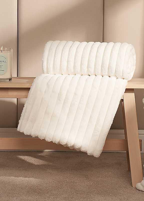 Online Home Shop Faux Fur Ribbed Fleece Throw - White