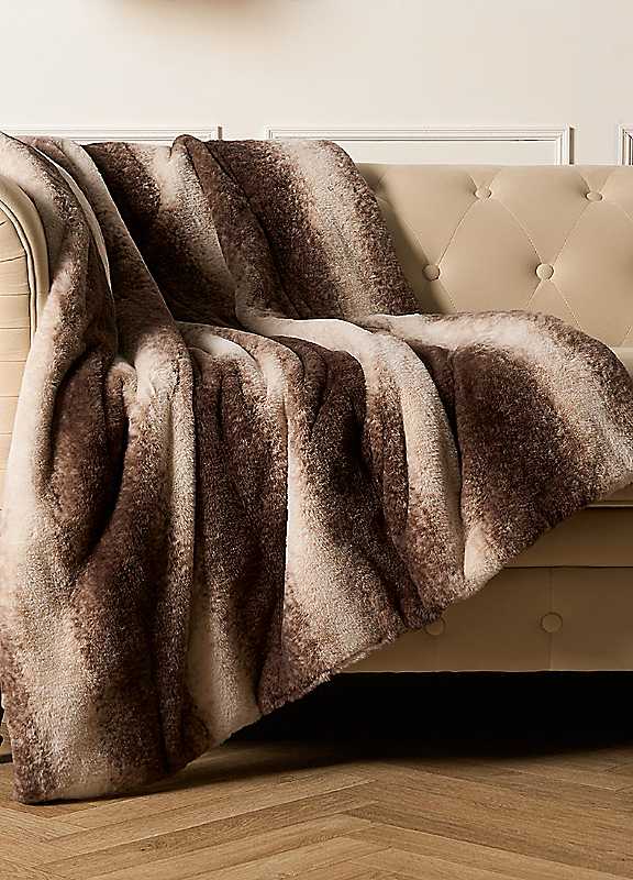 Online Home Shop Faux Fur Stripe Throw - Brown
