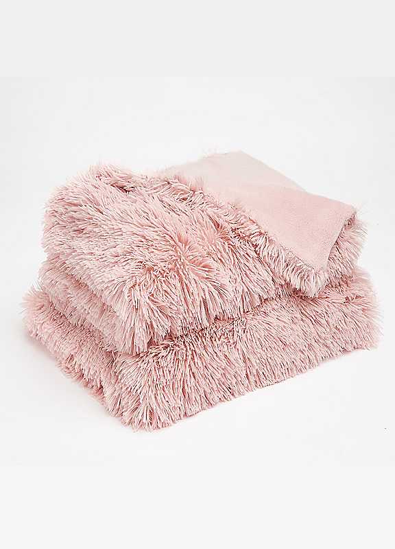 Online Home Shop Fluffy Faux Fur Fleece Throw - Light Pink