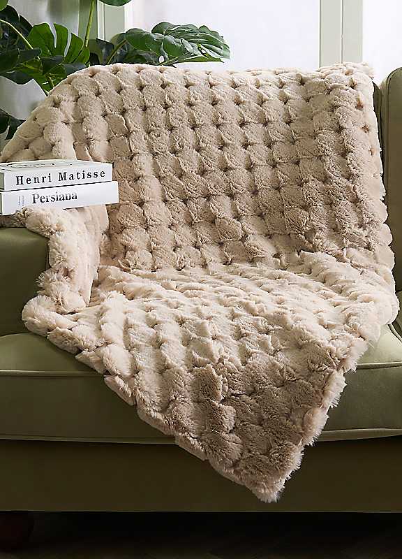 Online Home Shop Jumbo Waffle Faux Fur Fleece Throw