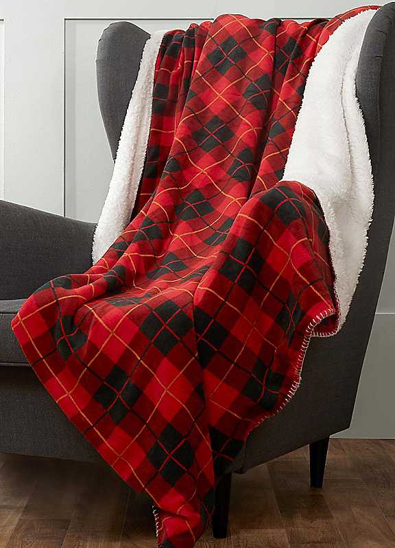 Online Home Shop Large Tartan Sherpa Fleece Throw - Red