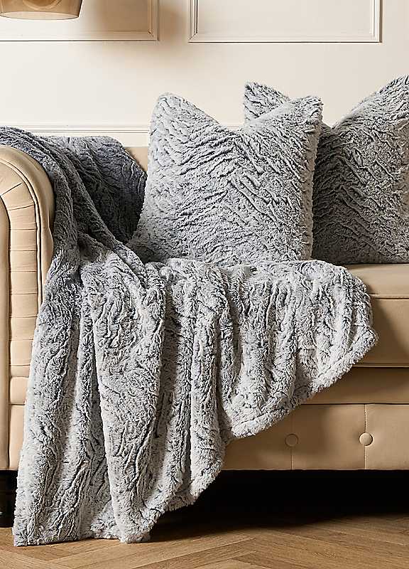 Online Home Shop Two Tone Faux Fur Fleece Throw - Light Grey