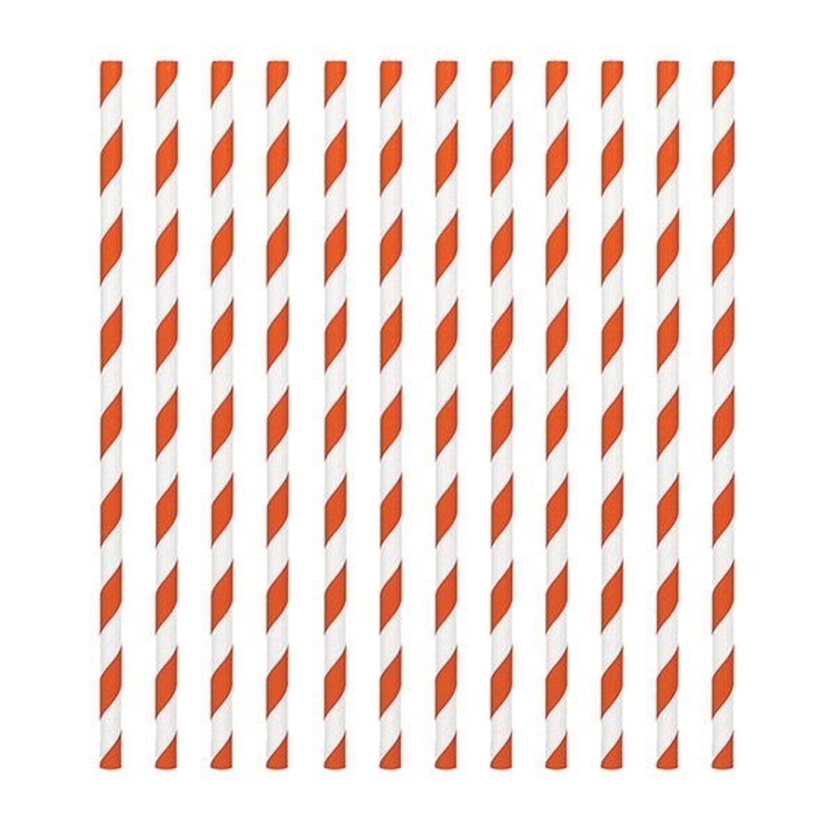 Orange Candy Stripe Paper Straws - Pack of 24